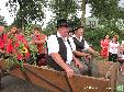 Wykonanie skomplikowanego herbu z ziół i zbóż nie był łatwy, ale nasze doświadczone w wykonywaniu wieńców panie, doskonale sobie z tym poradziły. Podczas uroczystego powrotu mogliśmy podziwiać zaprzęgi konne przystrojone kwiatami i kolorowymi wstążkami.